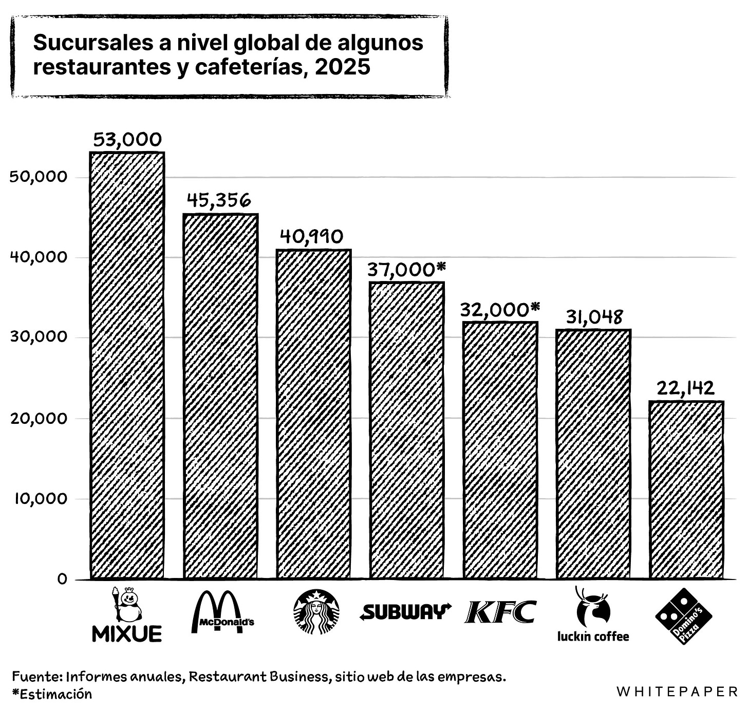 De esta lista, solo Luckin Coffee no tiene presencia en México. McDonald’s está en el país a través de Arcos Dorados. La empresa reportó 380 sucursales en México en 2025, frente a 374 un año antes.