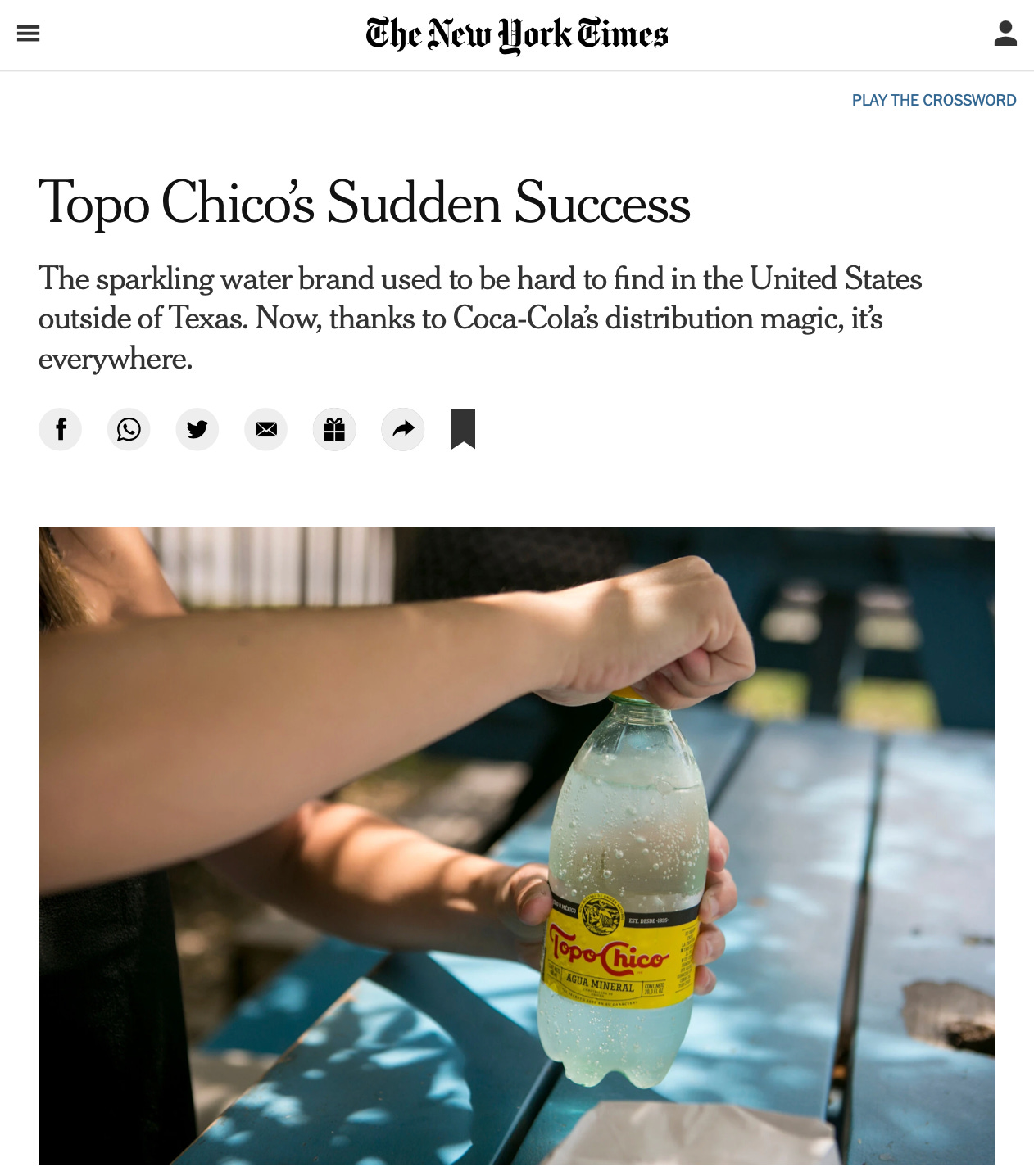 Después de haber sido adquirida por The Coca Cola Company en 2017, Topo Chico se convirtió ya en una de las aguas minerales más populares en EUA. Tan solo entre 2018 y 2019 sus ventas crecieron casi un 39%; este ritmo continúa acelerando y ahora hay escasez de sus productos en algunos mercados (NYT).